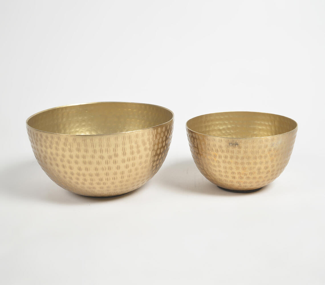 Hand Beaten Gold-toned Aluminium Nut Bowls (set of 2)