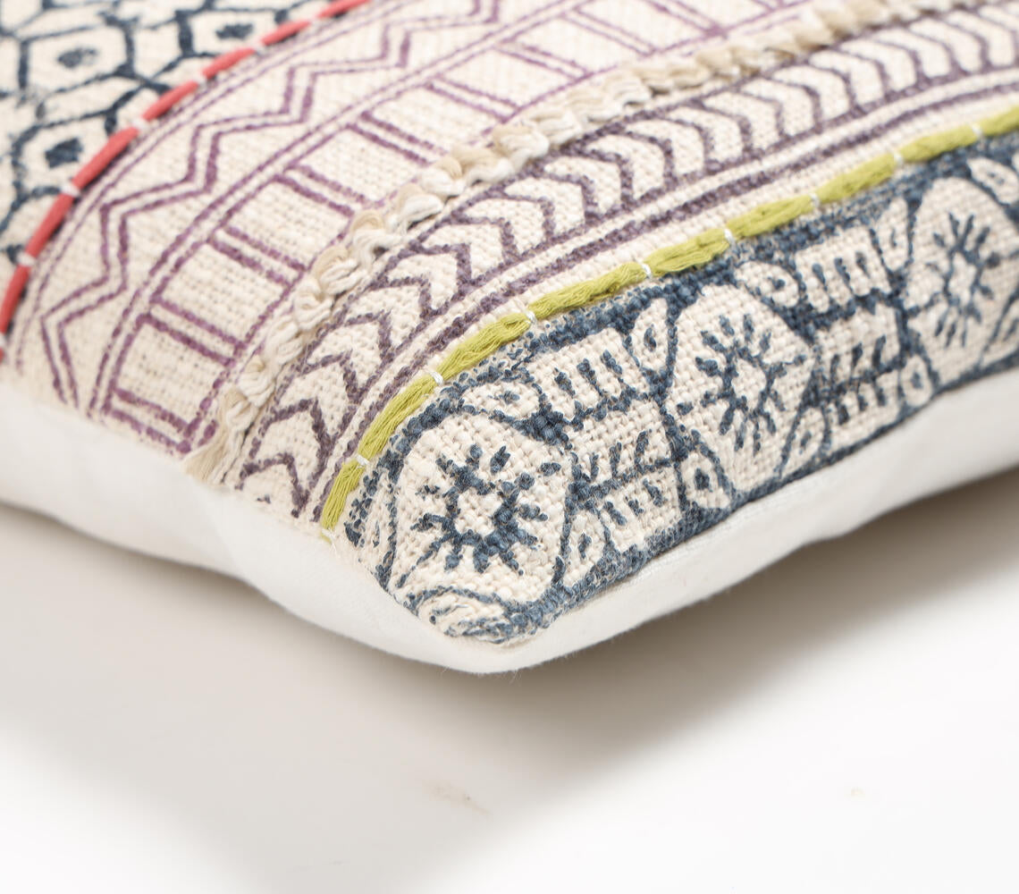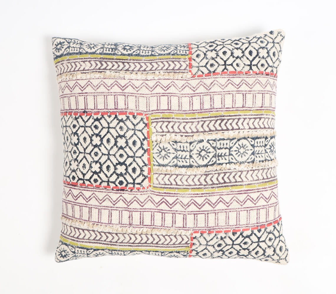 Block Printed Cotton Geometric Maximal Cushion Cover