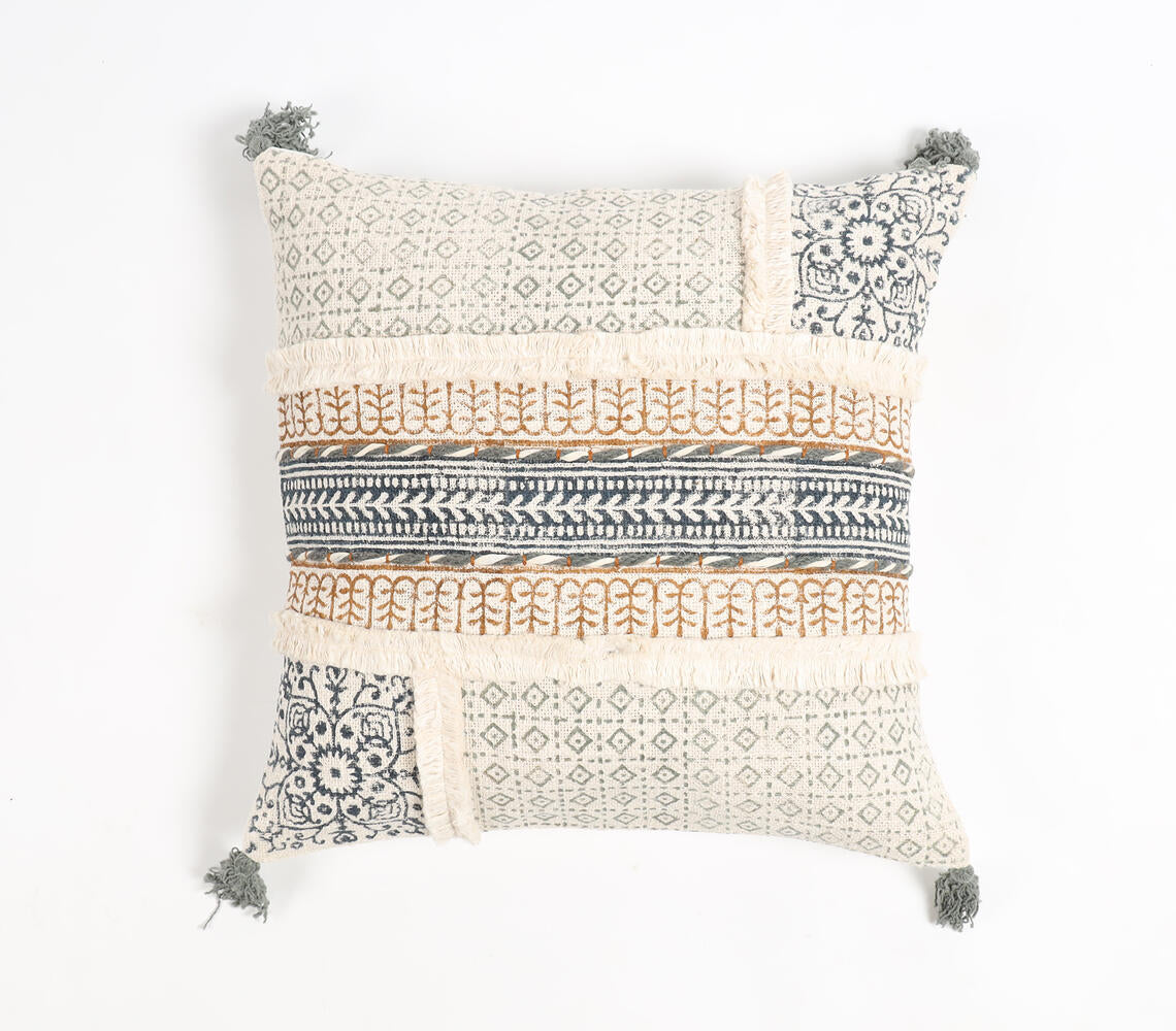 Block Printed Cotton Maximal Tasseled Cushion Cover