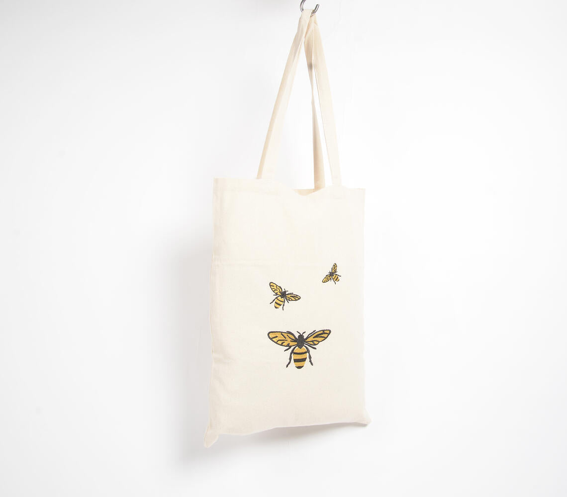 Bumble Bees Embroidered Cotton Tote Bag
