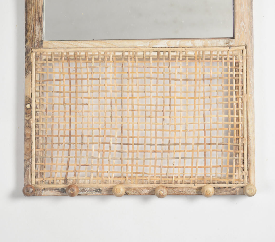 Wood & Cane Distress-White Finish Accessory Organiser