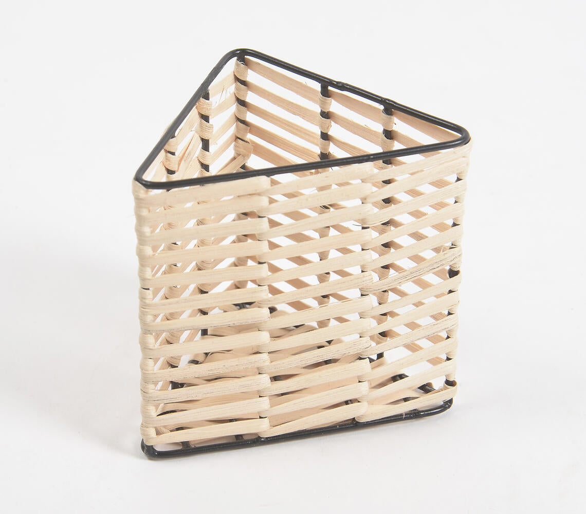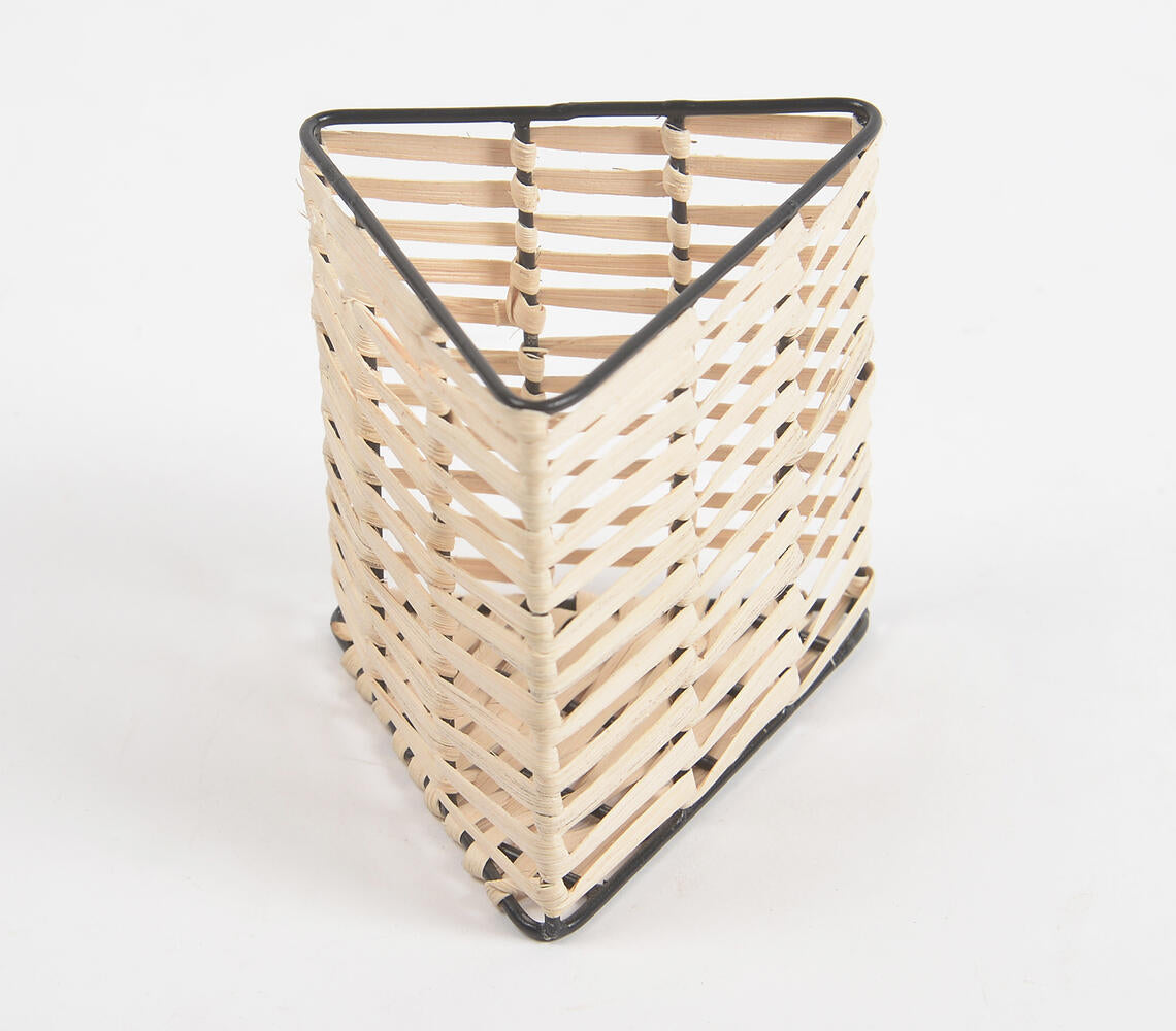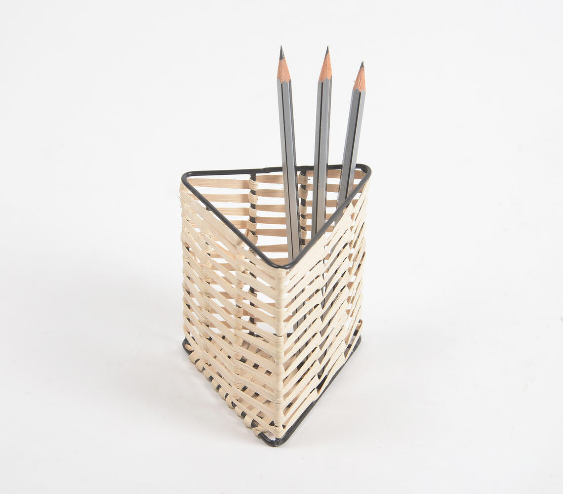 Handwoven Cane & Iron Triangle Pen Stand