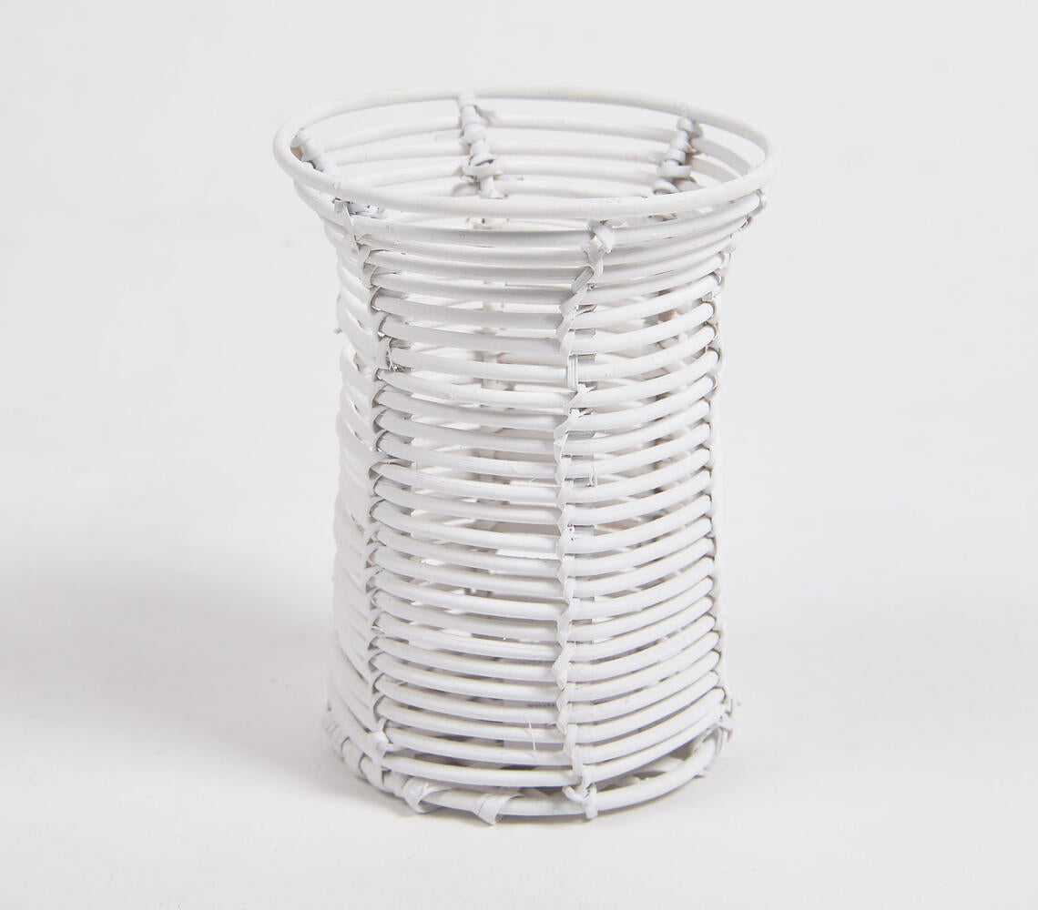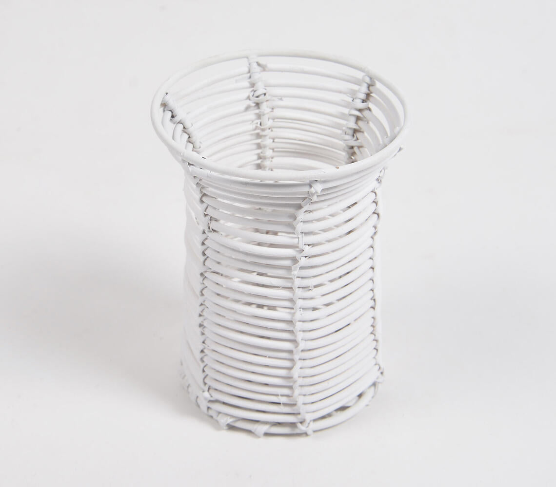 Handwoven Cane White Eco-Friendly Pen Stand