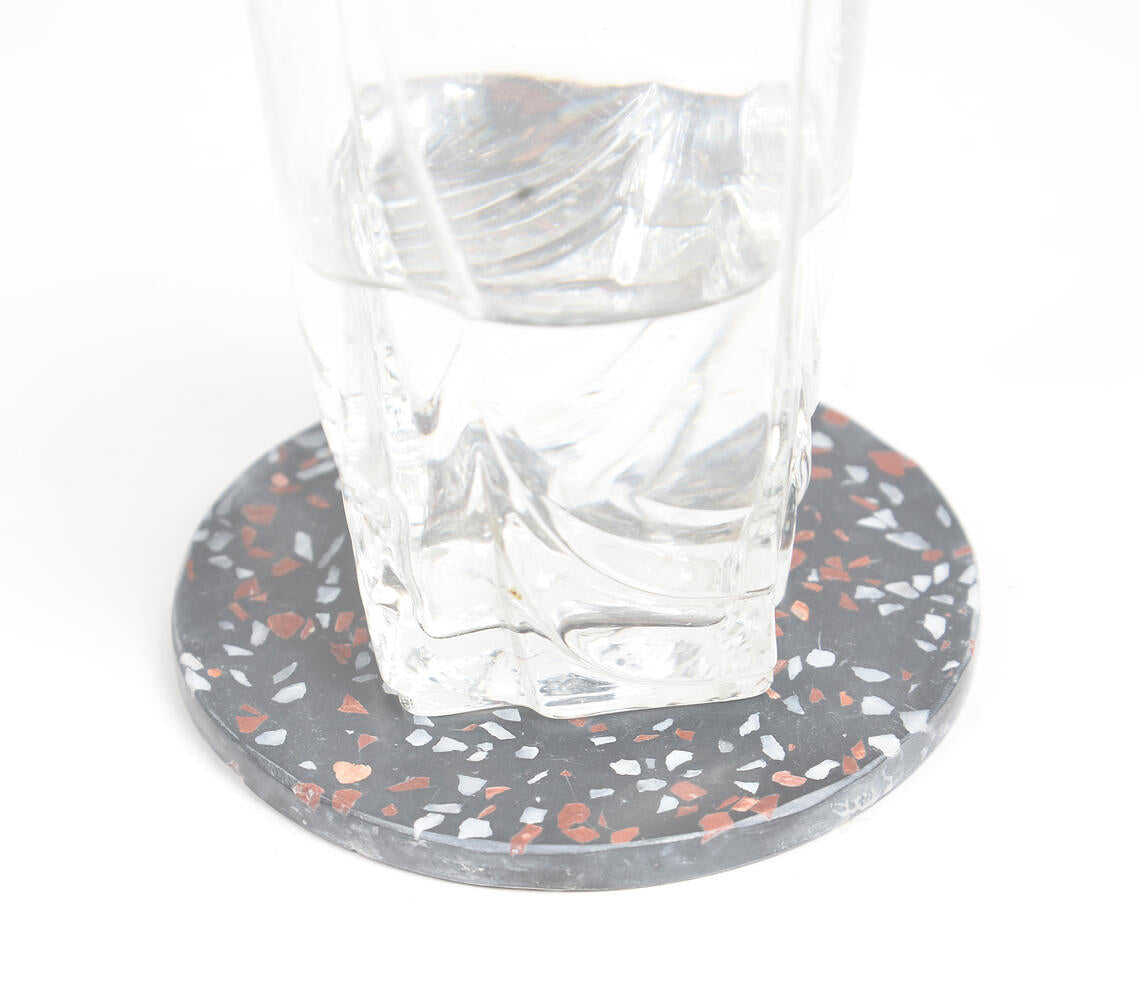 This set of hand cut composite stone coasters are a design of the present, crafted to be...