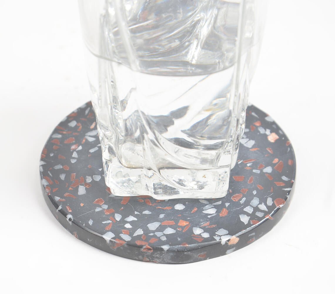 This set of hand cut composite stone coasters are a design of the present, crafted to be...