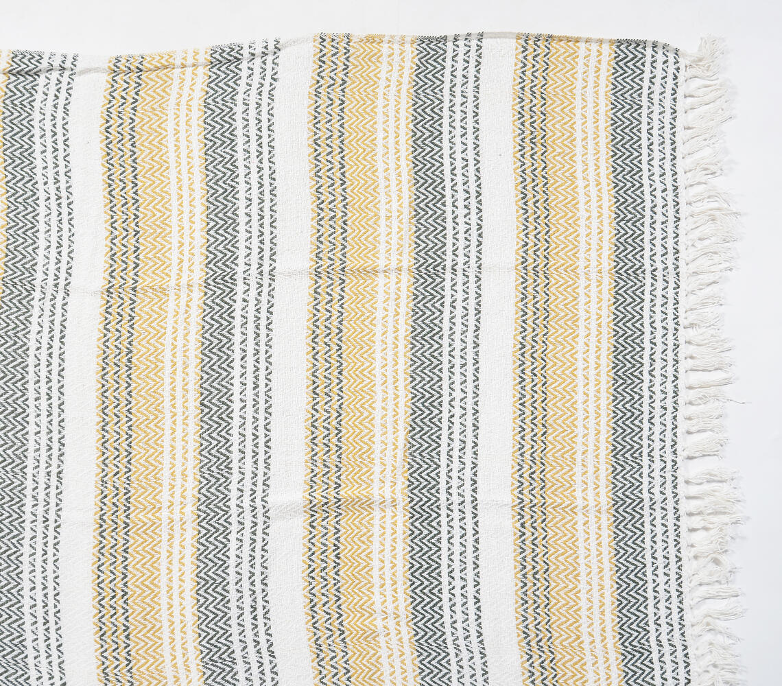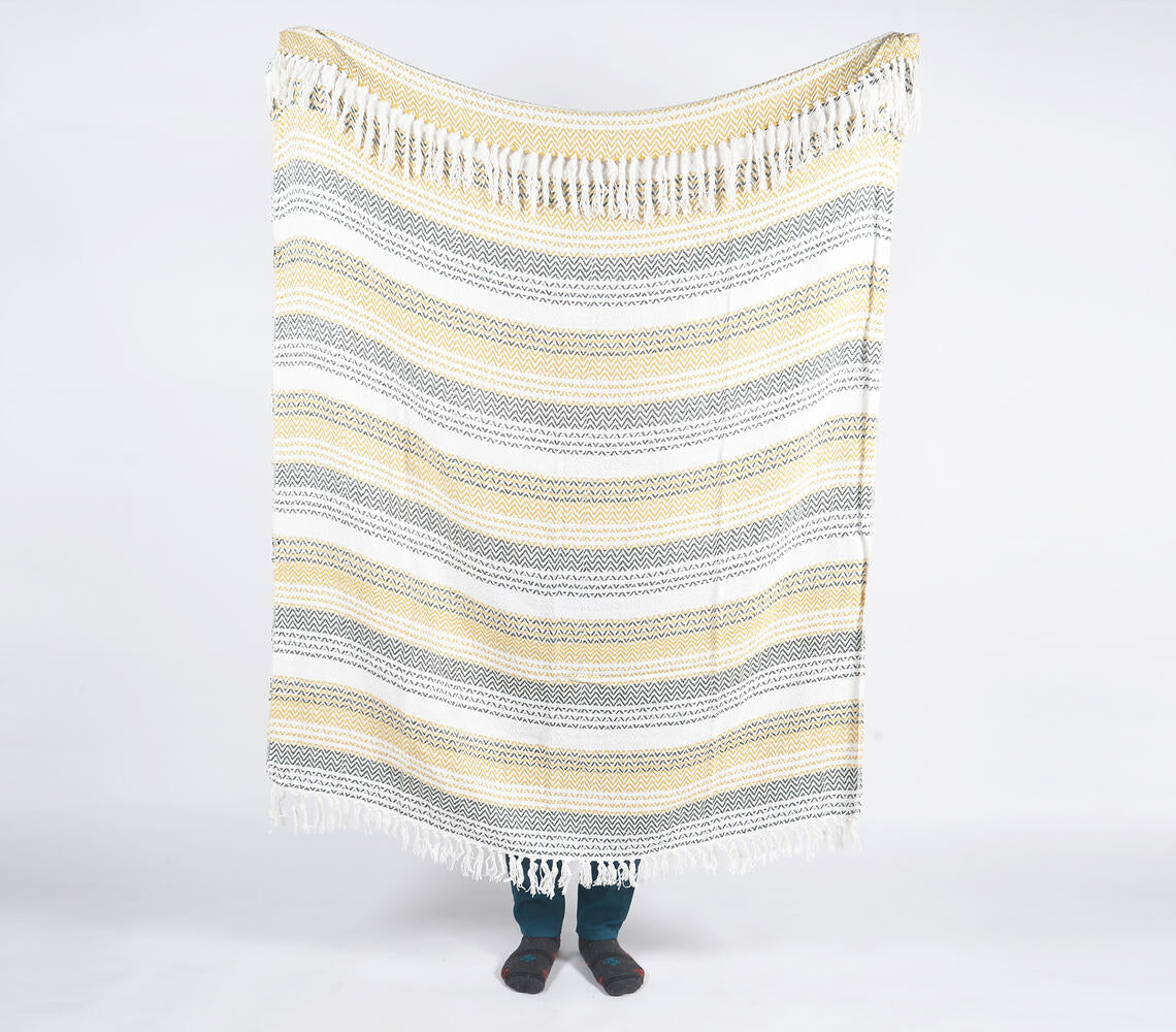 Handwoven Cotton Chevron-Striped Throw with Tassels