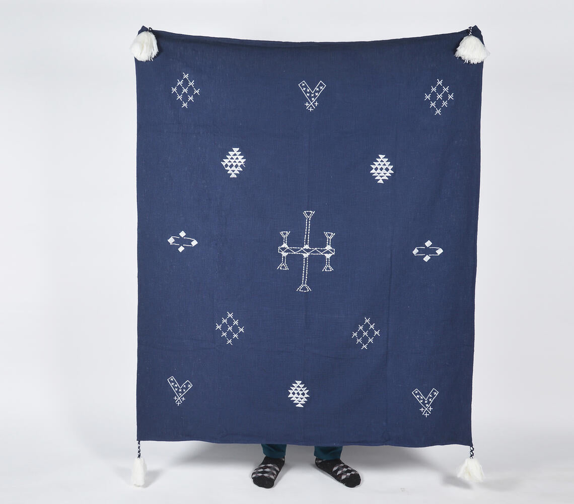 Handwoven Cotton Monochrome Navy Throw with Tassels