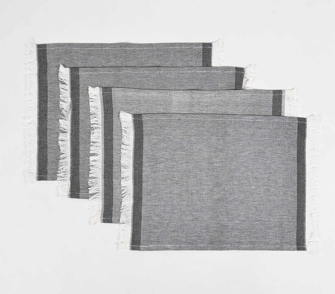 Yarn-Dyed Cotton Solid Placemats with Frayed Edges (set of 4)