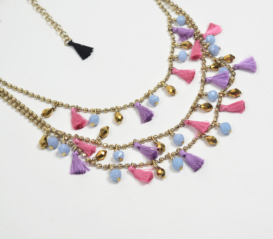 Gold-Toned Iron Layered Tasseled Necklace with Extension Chain
