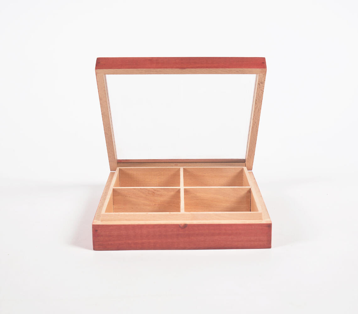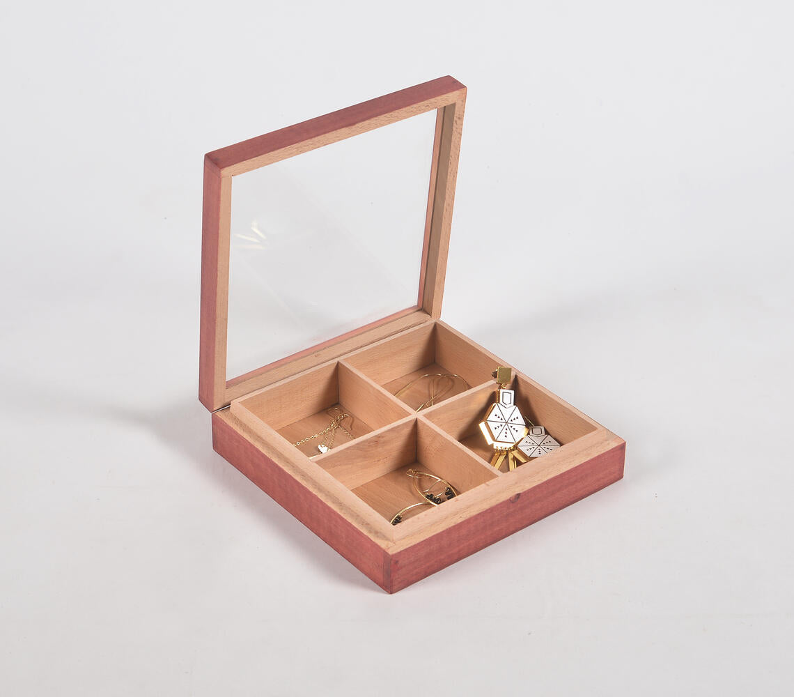 Hand Cut Steam Beech Wood Red Jewelry Box - 4 Compartments