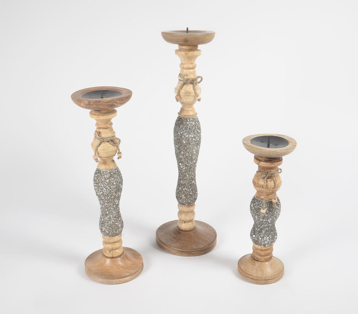Statement Jazzy Wooden Candle Holders (Set of 3)