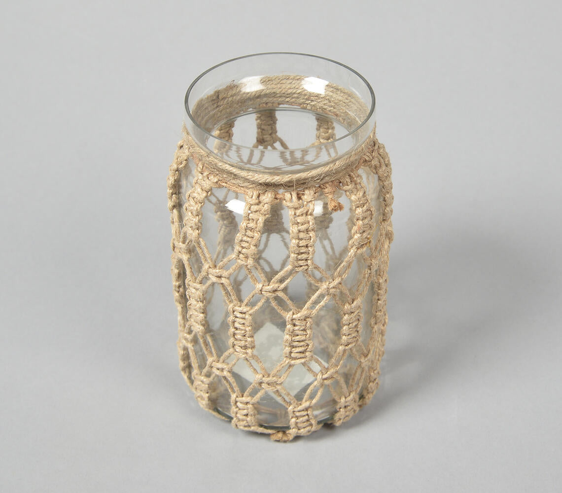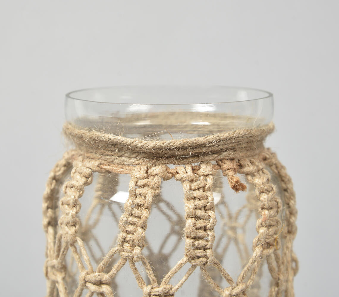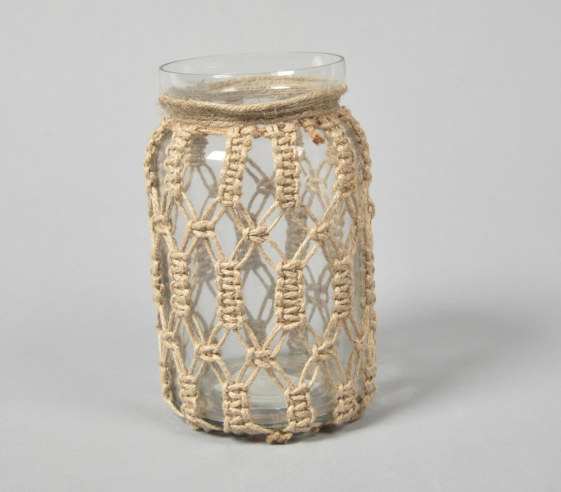 Hand Knotted Jute & Glass Jar Vase