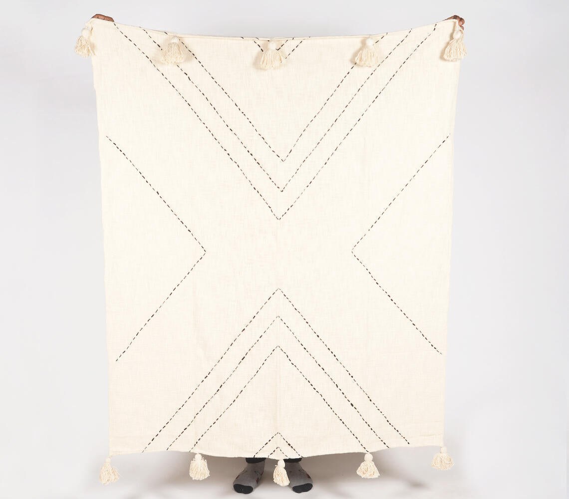 Houzz of Maya brings to you this spectacular cotton throw, handwoven on a wooden loom to utter...