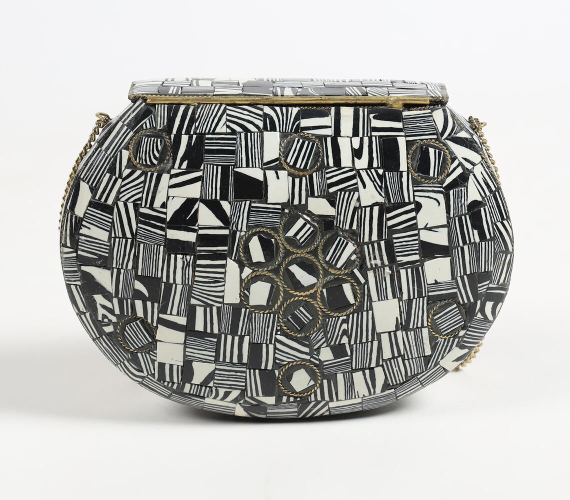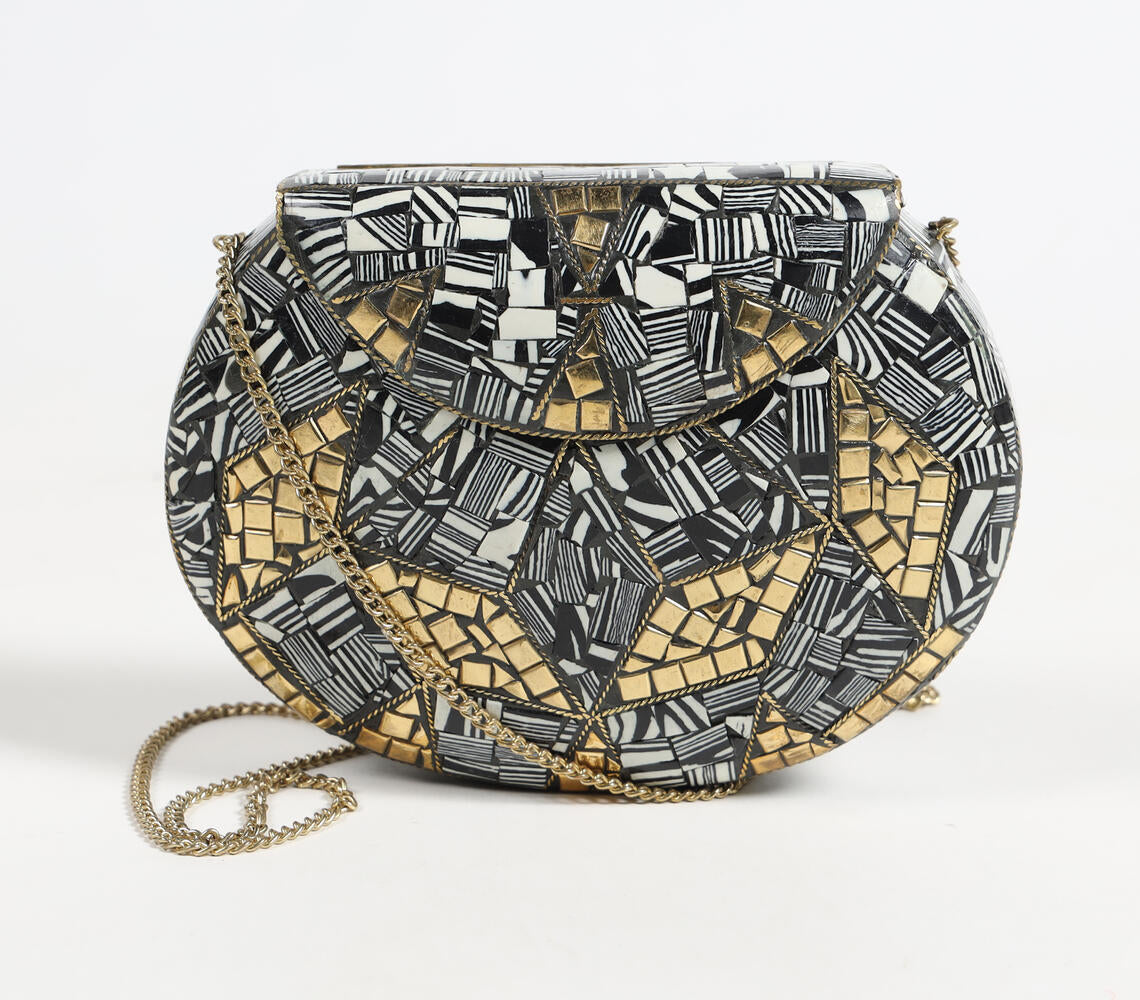 Mosaic Monotone Metallic Half-Moon Clutch with sling