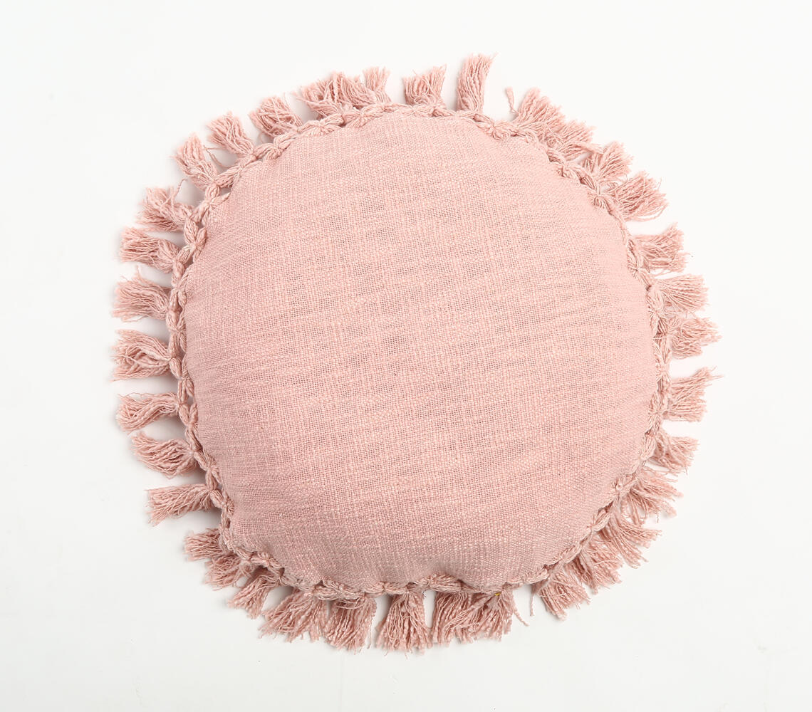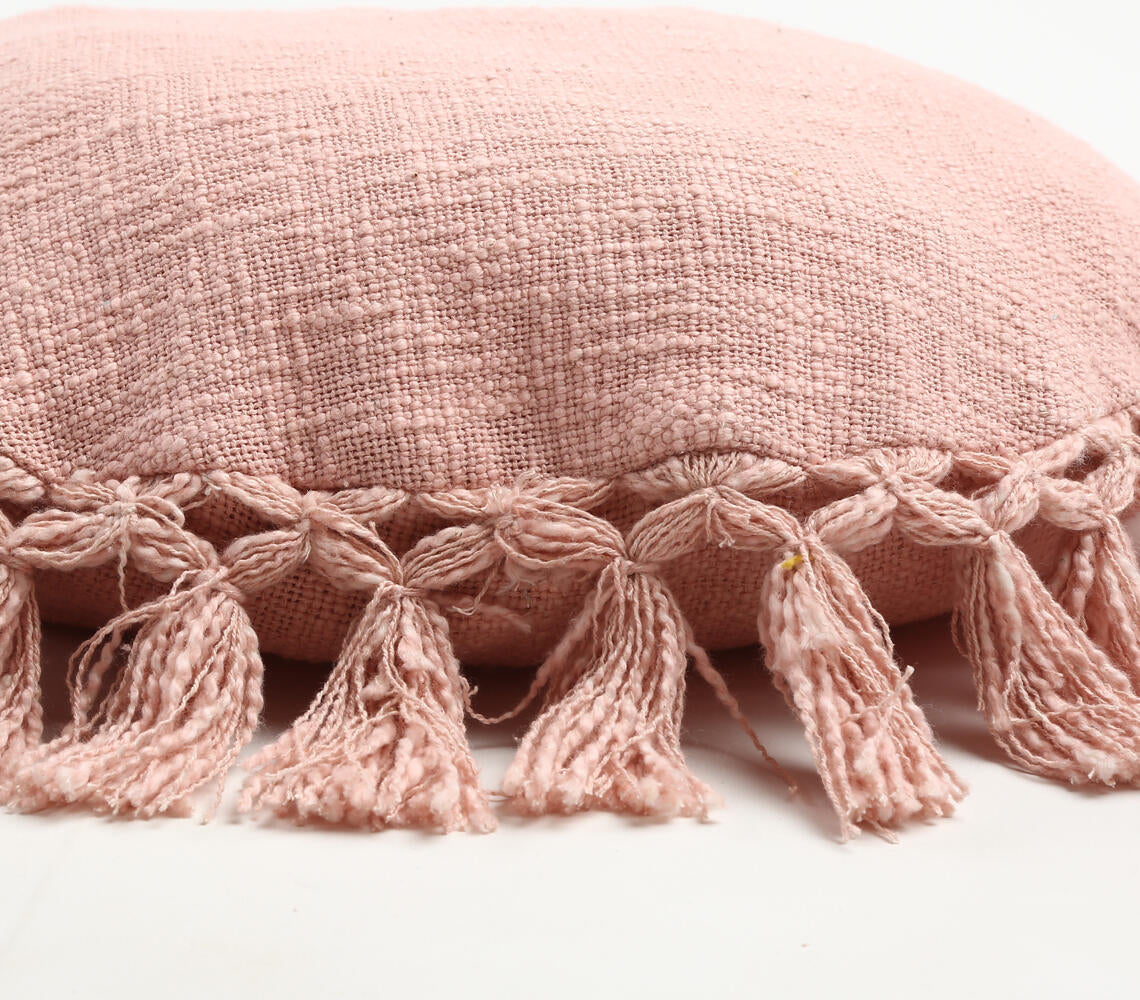 Pastel Pink Tasseled Round Cushion Cover