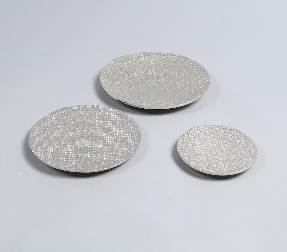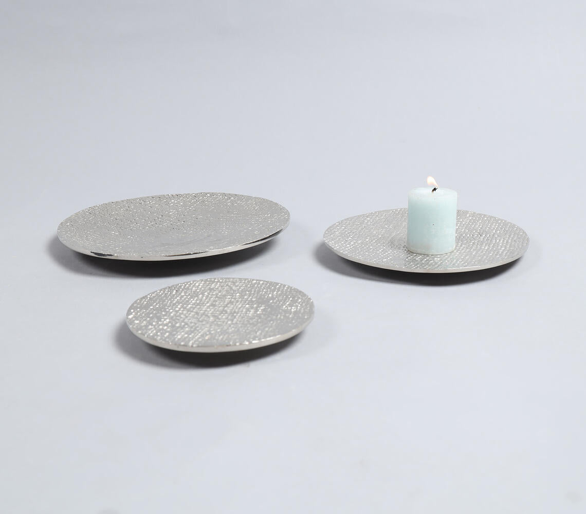 Sand Cast Aluminium Round Textured Candle Plates (Set of 3)
