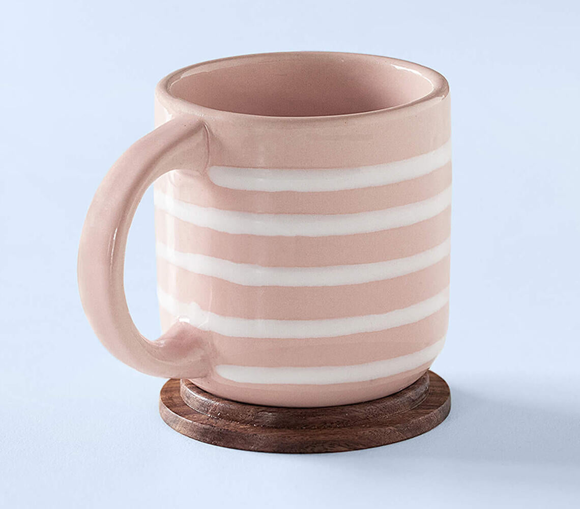 This stunning striped ceramic mug features a fun and distinctive design that lends a morning cuppa an...