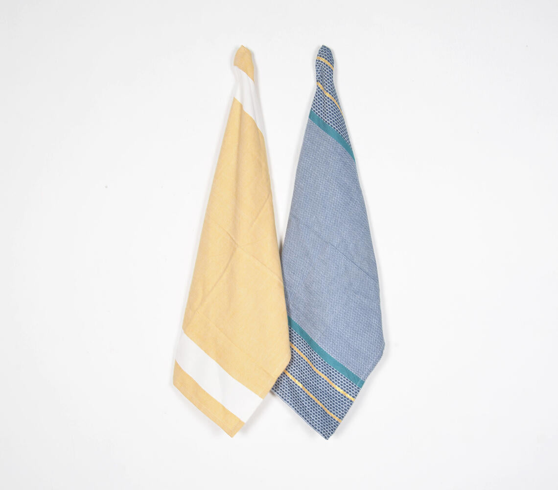 Minimal in design and soft to the touch, these Houzz of Maya cotton kitchen towels are absorbent...