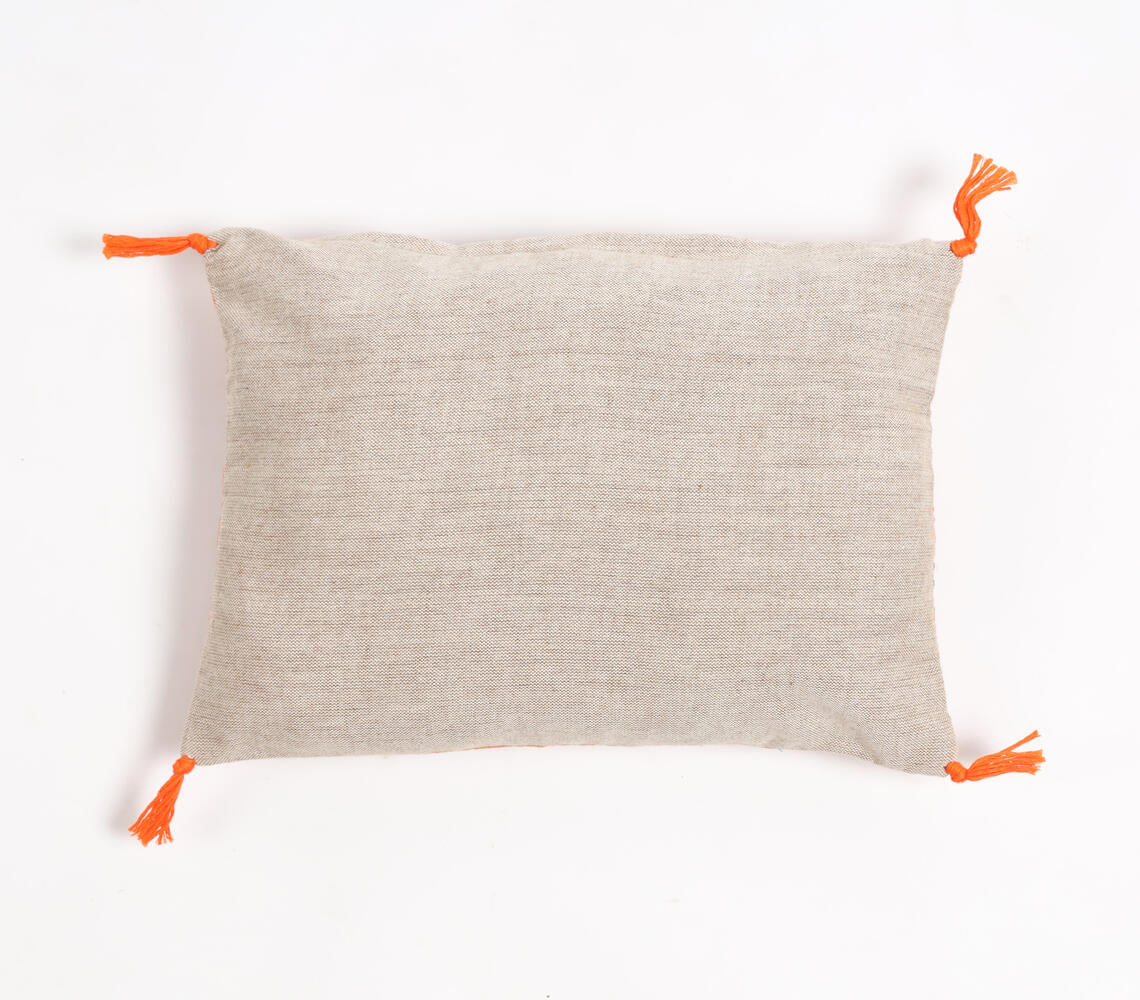 Striped & Tasseled Slub Coral Lumbar Cover