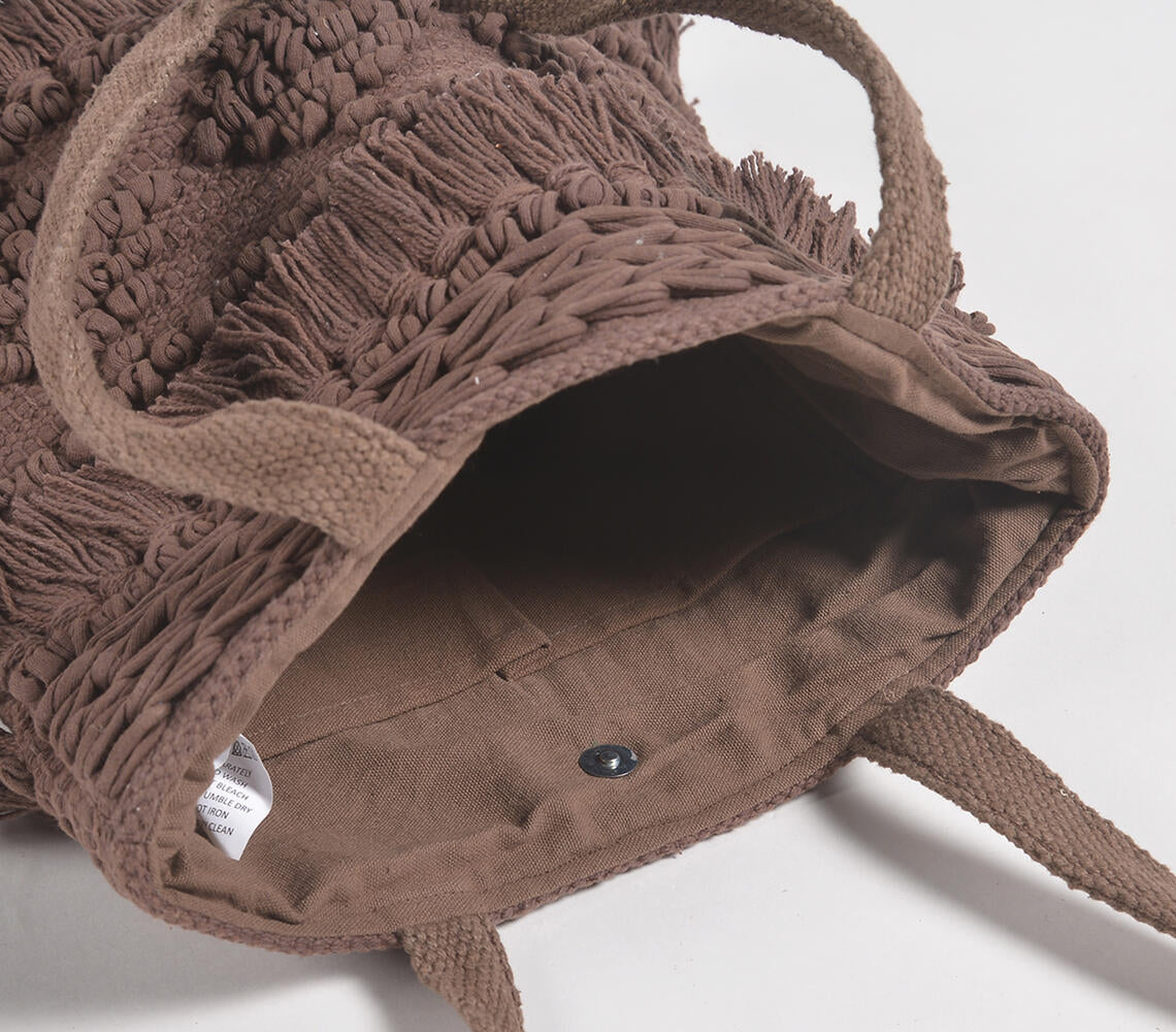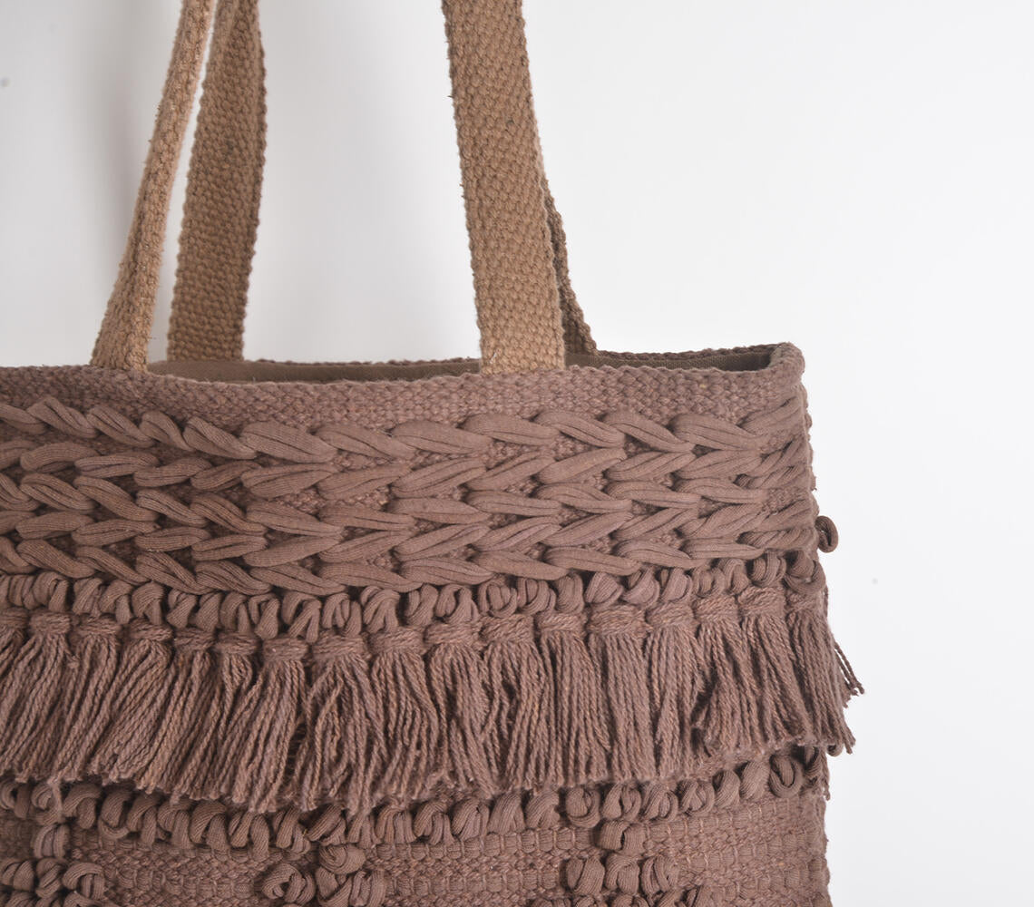 Tufted & Tasseled Cocoa Tote Bag