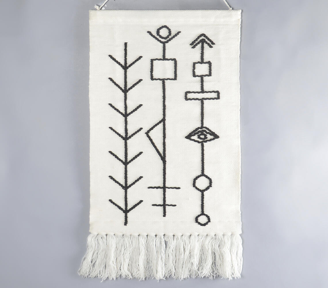 Handwoven Tribal Monochrome Fringed Wall Hanging