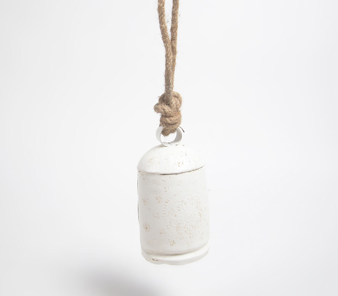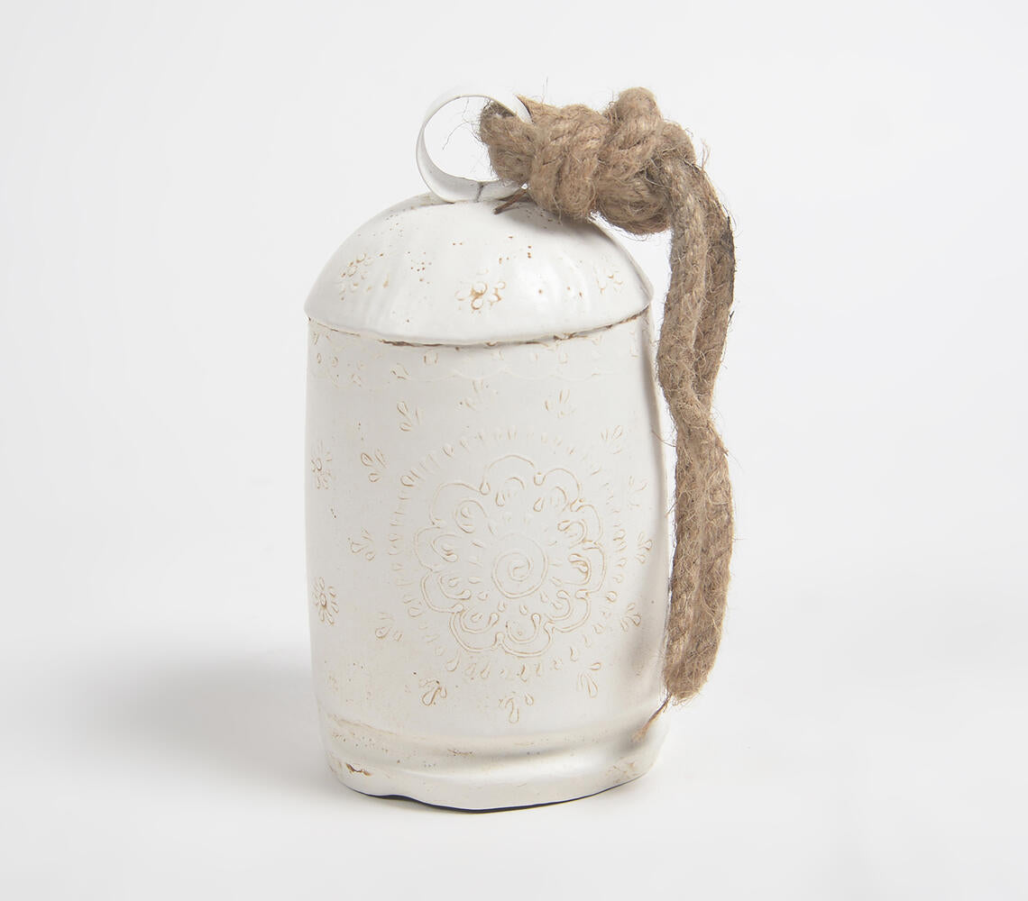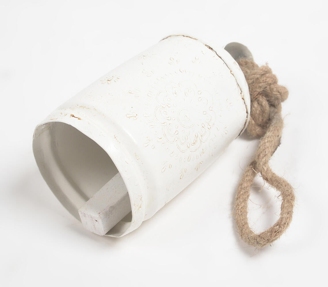 Distress White Iron Bell with Rope
