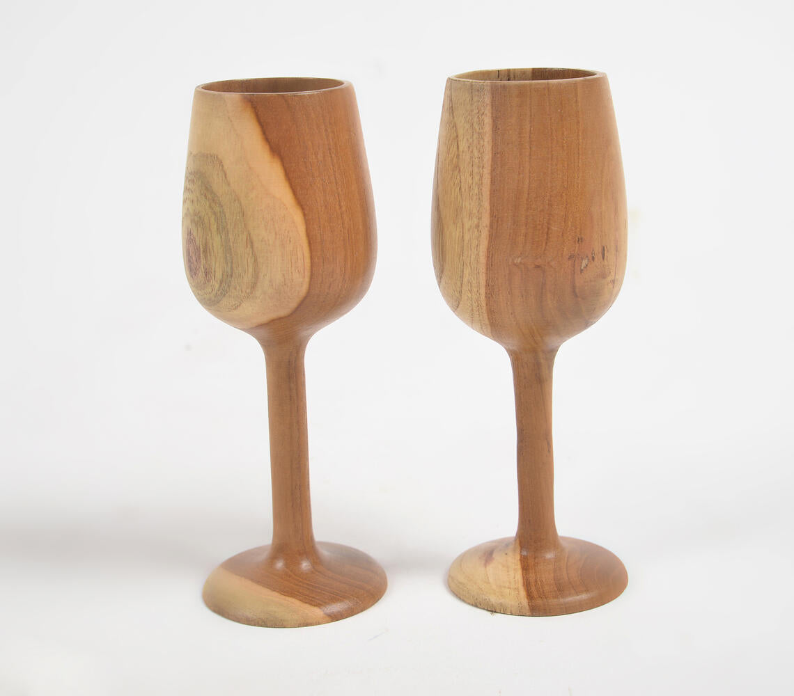 Acacia Wood Turned Wine Glasses (set of 2)