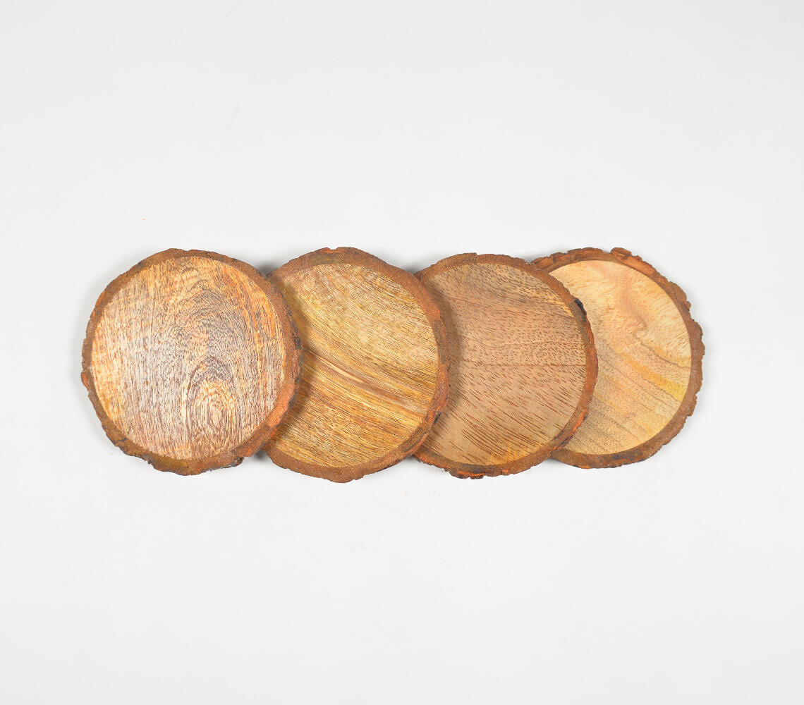 These striking wooden coasters are hand cut by artisans from North India. Hand cut wooden offerings are...